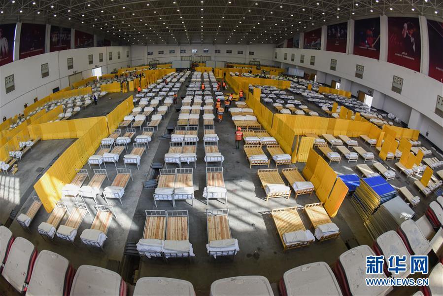 2月4日拍攝的正在加緊改造的武漢客廳方艙醫院。新華社記者 程敏 攝